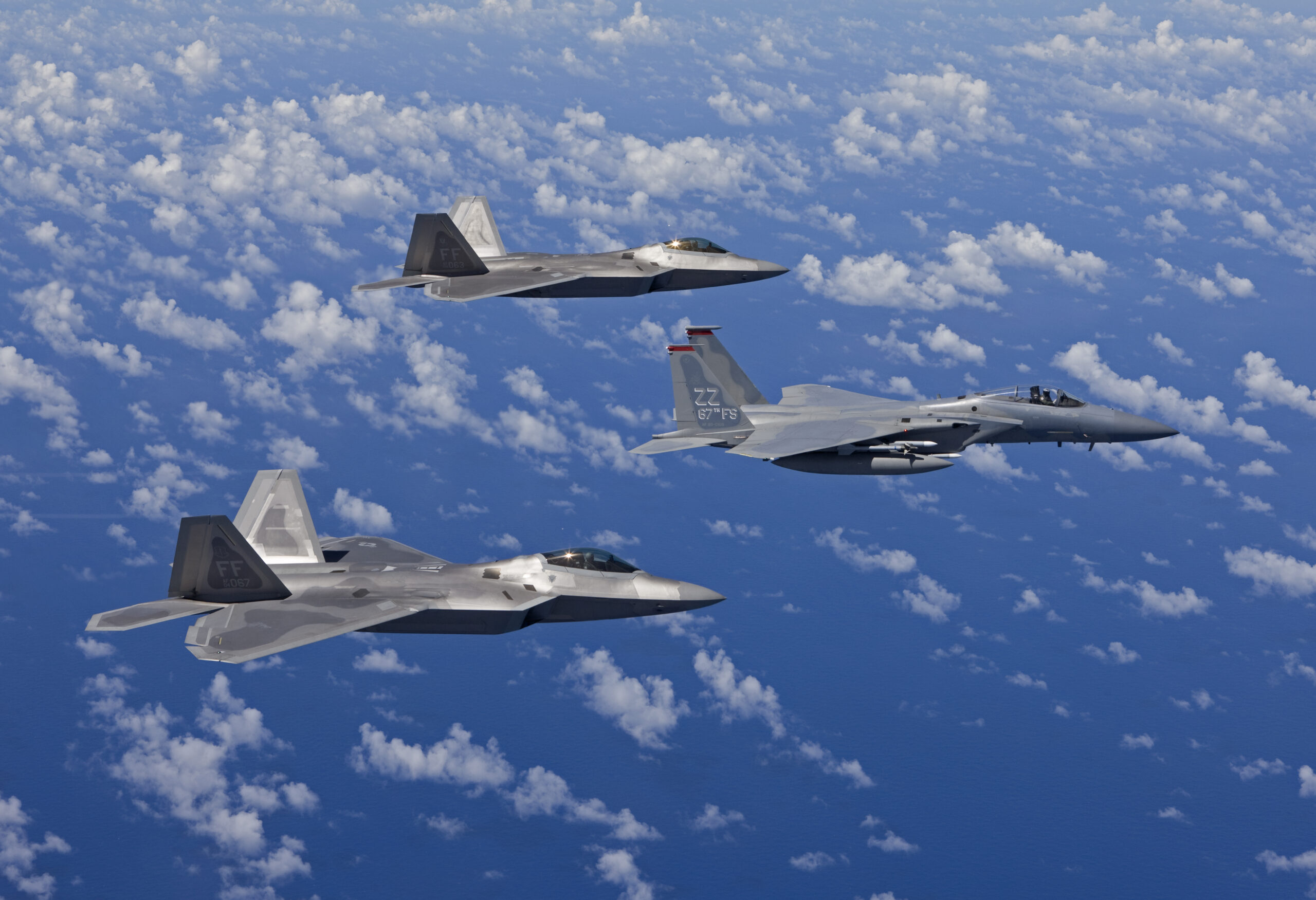 Those F-15C/Ds are flown by the 44th Fighter Squadron (FS) “Vampires” and the 67th FS “Fighting Cocks.” The two squadrons currently have around 48 aircraft in total.