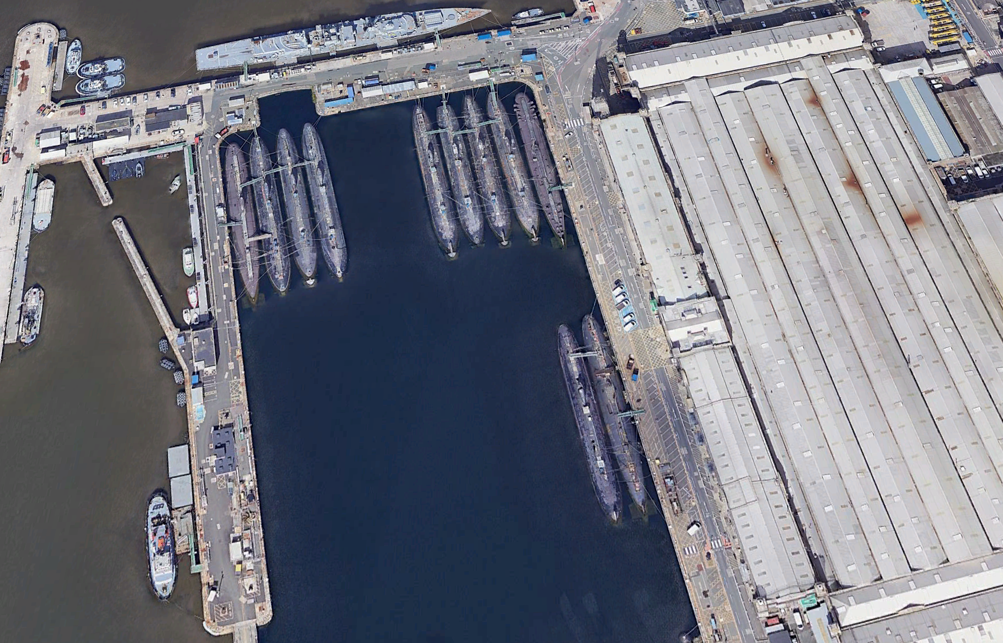 Of the boats in Devonport, 12 still have their nuclear fuel on board. The submarines are stored afloat in a non-tidal basin. Every 15 years, each boat goes into dry dock for an inspection and preservation work, where necessary.
