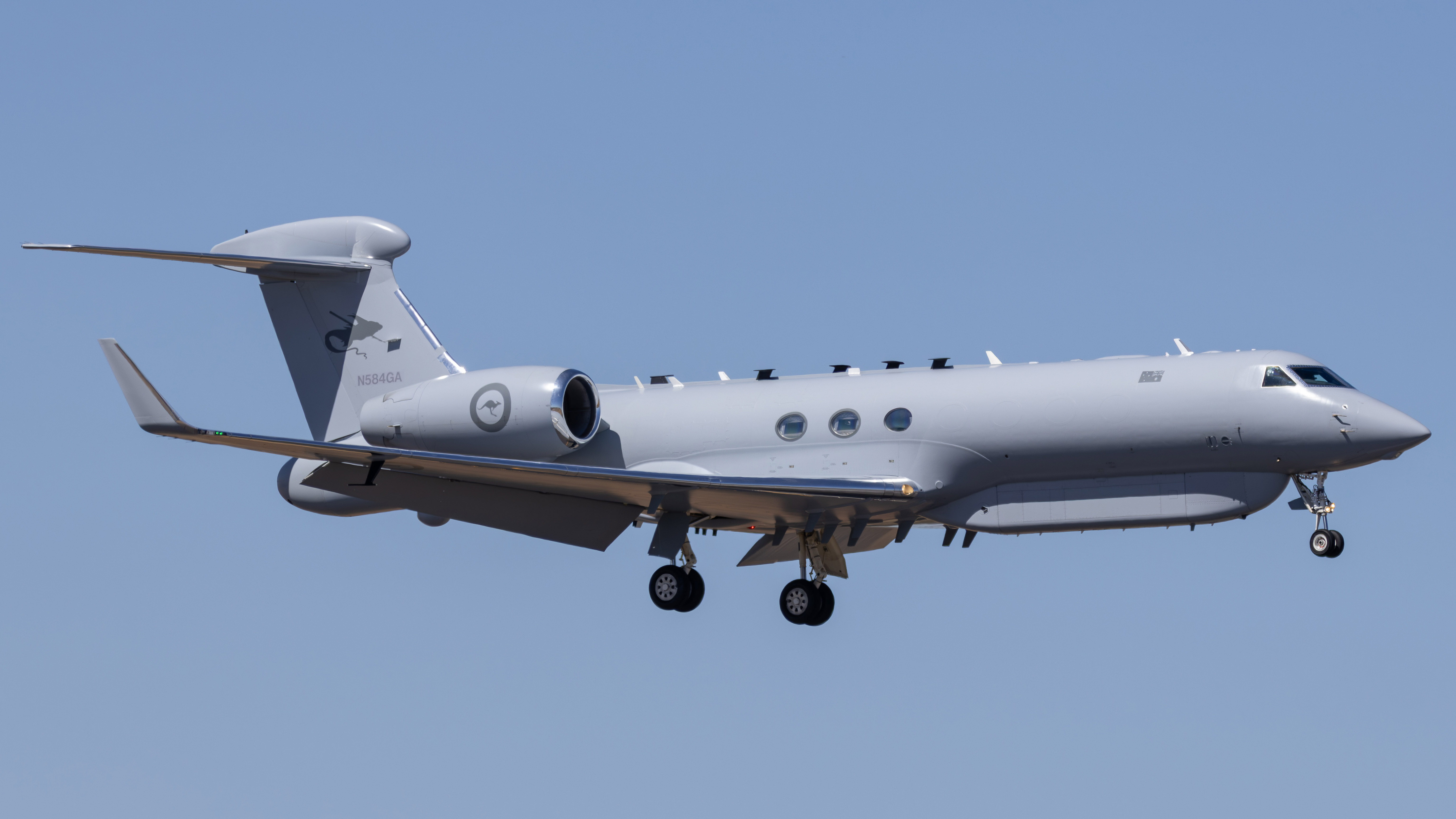 The MC-55, which is still wearing its U.S. civilian test registration N584GA, is one of four currently on order for the Royal Australian Air Force (RAAF), supposedly the third to be built. On its tailfin, the jet already wears the marking of its operating unit, No. 10 Squadron, which previously flew the AP-3C Orion maritime patrol aircraft, including the RAAF’s secretive electronic warfare versions.