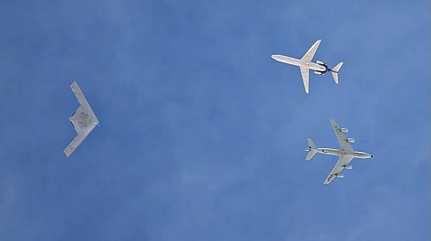 Another set of photos comes to us from photographer Ian Recchio, who goes by the handle @Lookunderocks on Instagram. It shows the B-21 behind the KC-135R. It also shows a business jet-like aircraft passing underneath the two. It isn’t perfectly clear if the aircraft was working directly with the B-21 on this test flight, but it seems likely.