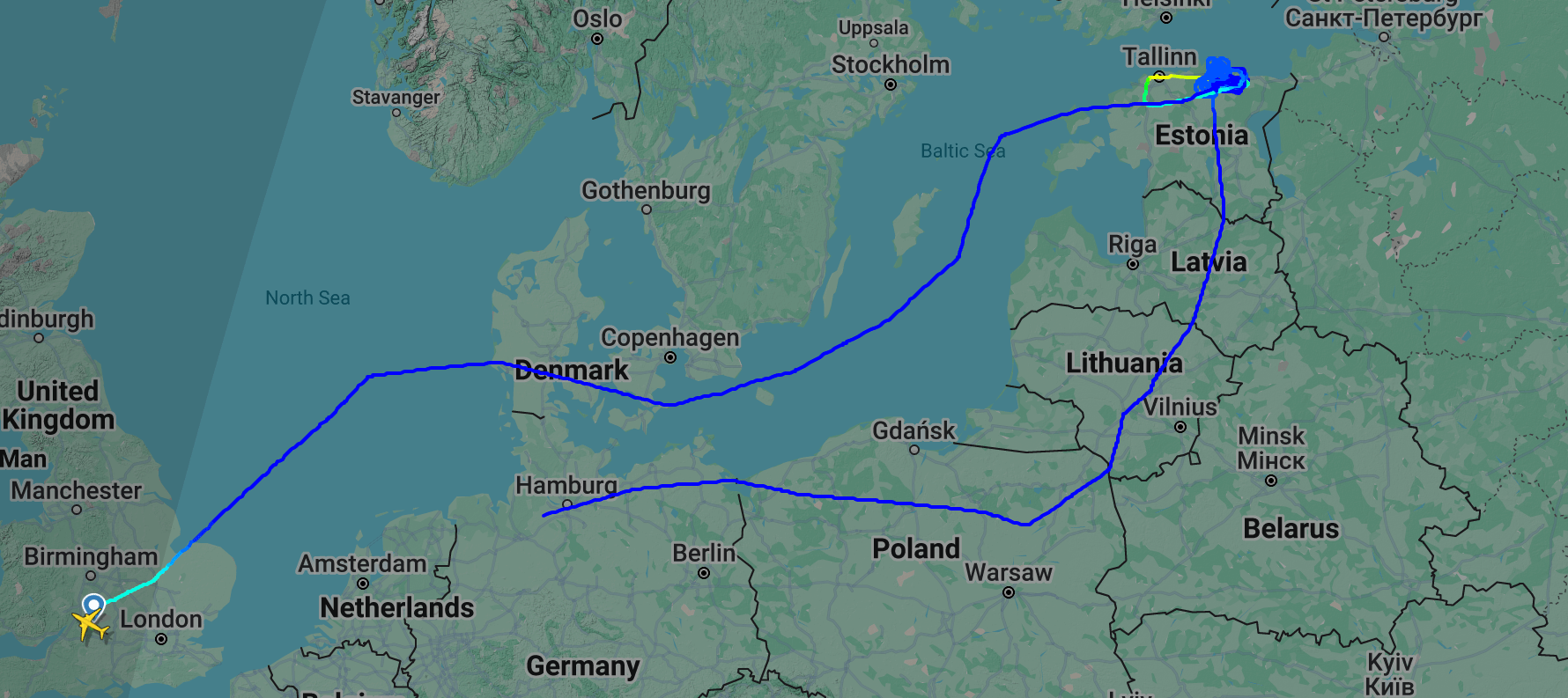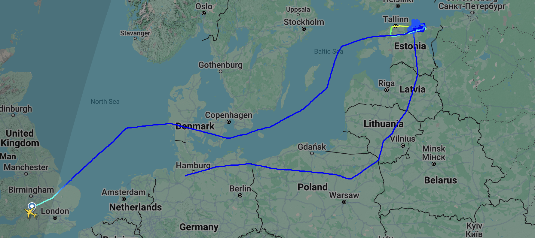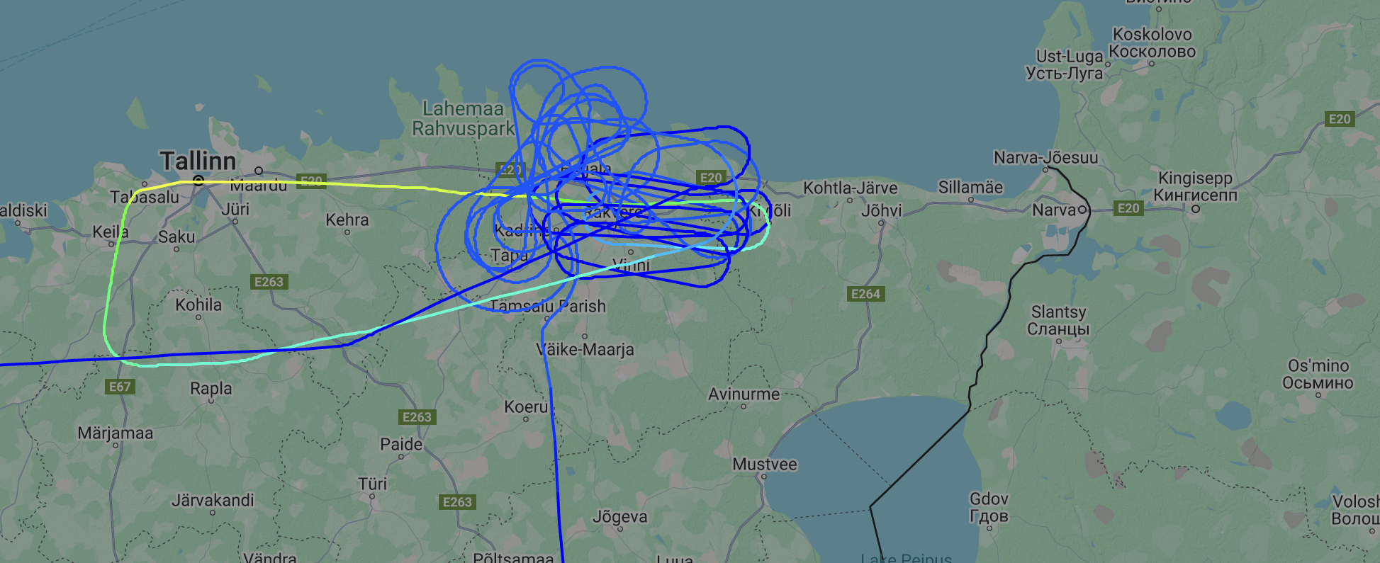 Earlier today, after flying over Tallinn, the B-52 continued in an eastward direction, heading toward Saint Petersburg. Based on publicly available data from online flight-tracking websites, the bomber came to within around 50 miles of the Russia-Estonia border before turning south.