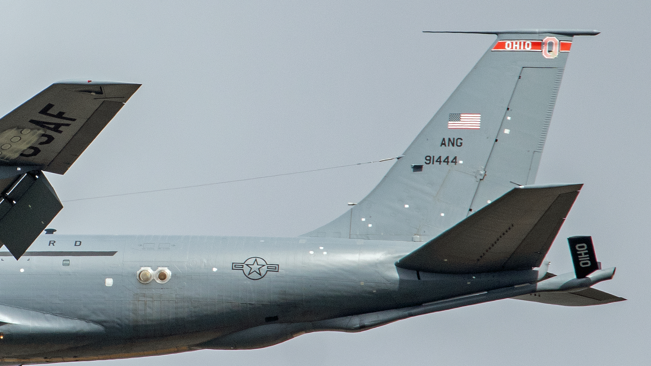 The images come to us from aviation photographer Andrew McKelvey, which show the aircraft dotted with the repairs from nose to tail. It is very likely this is one of the tankers damaged in the Iranian long-range strike on Prince Sultan Air Base in Saudi Arabia last month. The aircraft belongs to the Ohio Air National Guard’s 121st Air Refueling Wing.