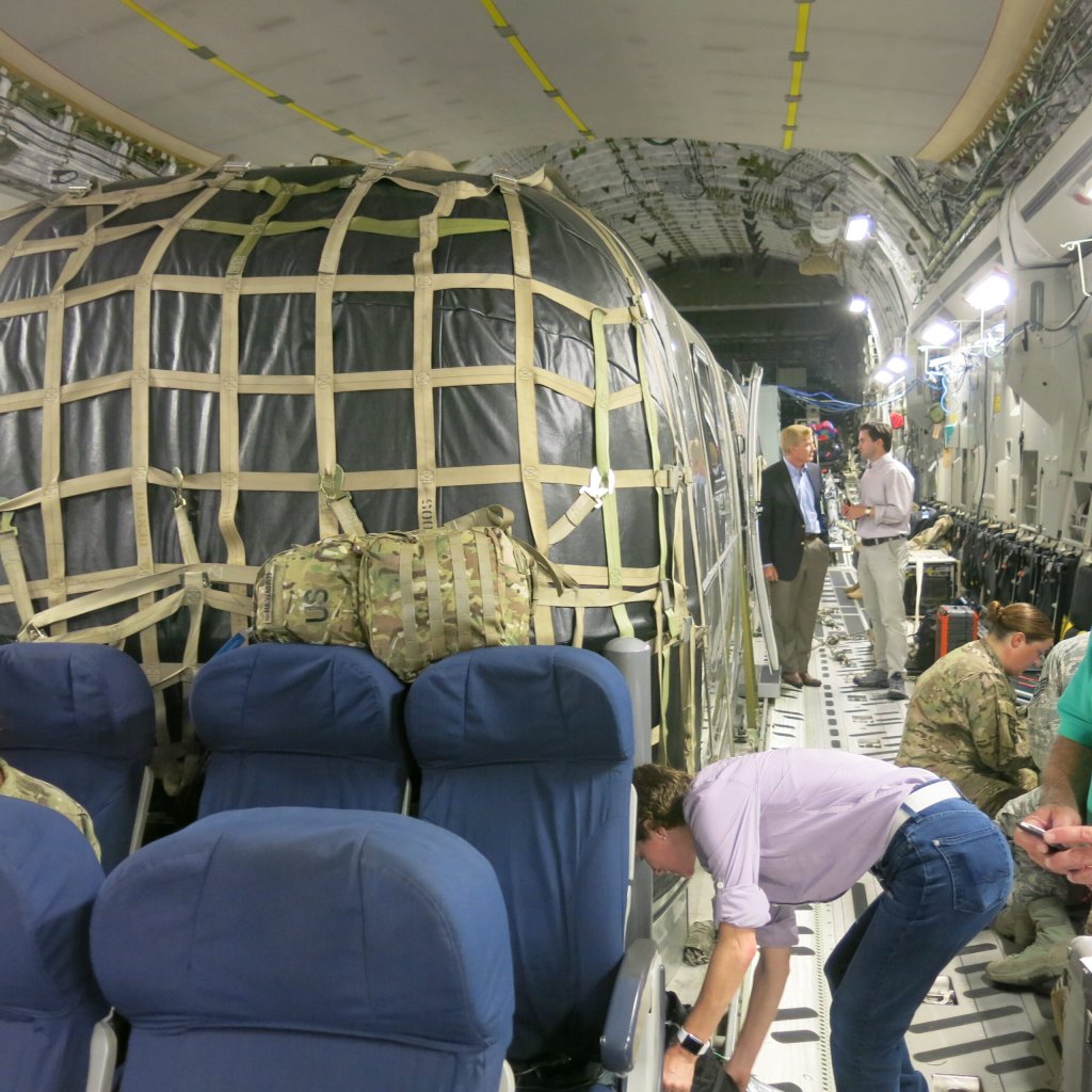 The Silver Bullet is essentially a mobile SCIF, office, and apartment all in one. An arsenal of communications tech has been continuously upgraded that works to connect the pod to the outside world. This includes multiple options for unsecure and secure voice, data, and video teleconferencing. These systems “plug in” to the existing communications systems aboard a select number of C-17s via a set of umbilical cables. There is a large “mechanical caboose” that brings up the rear of the palleted Silver Bullet system where the communications technology and controls that support the pod are held and where the pod’s electronics are interfaced with the C-17. The updated version of this enclosure is called the “Silver Eagle” and it can support communications at the very highest levels. Above all else, this includes being able to connect with the National Command Authority that underpins America’s nuclear deterrent, anywhere and anytime.