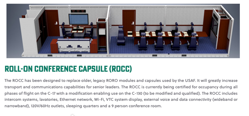 The Silver Bullets’ days are numbered though. For a host of reasons, a replacement unit called the Roll-On Conference Capsule (ROCC) is scheduled to be fielded in December, the Air Force told us today. Unlike the adapted Silver Bullets, which first flew in the early 1990s, these were purpose-built for the mission.