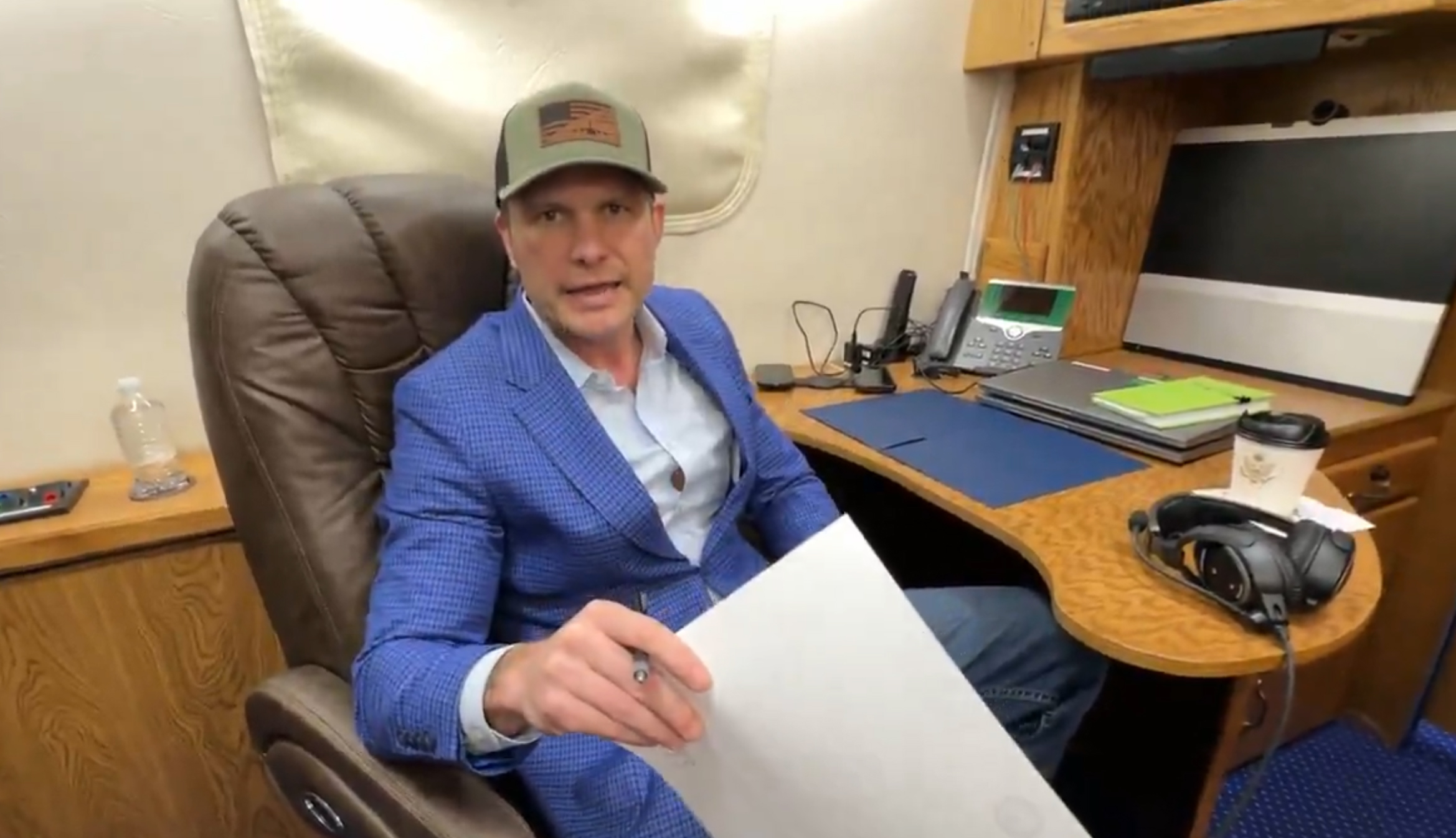 The short video showed Hegseth sitting on a brown leather chair at a small workstation inside the Silver Bullet, where he signed an order changing the name of Fort Liberty in North Carolina to Fort Roland L. Bragg. It was during a long flight from Joint Base Andrews (JBA) in Maryland to Germany, where he visited U.S. Africa Command and U.S. European Command in Stuttgart on Tuesday, before heading to Brussels to discuss the future of U.S. support for Ukraine with NATO allies.