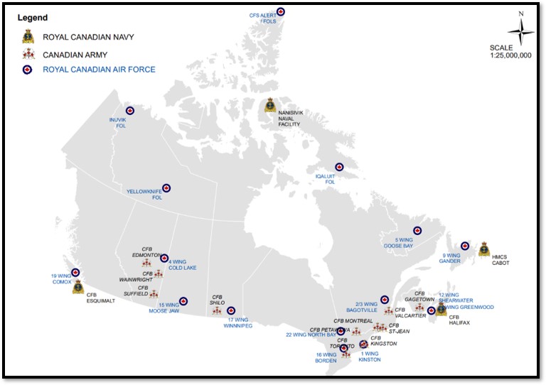 A: Yeah, I think very close. There is one issue, runway land. We have four Forward Operating Locations (FOLs) in the Arctic. One in Inuvik up by the Alaskan border. One in Yellowknife, kind of in the middle of the Canadian Arctic. One on Baffin Island. It’s called Iqaluit, and I’ve got a deployed operating base with a much larger footprint in Goose Bay, Labrador, which is north of Quebec, on the landmass. So those four sites are where I would disperse my aircraft to, just to shorten my response times.