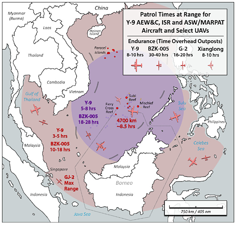 As already noted, the current operational status of the WZ-9 is not clear, but the presence of a Divine Eagle in Hainan for months now could point to the drone being at a very mature phase of testing or even semi-operational, if not fully operational. Basing the drone at Ledong/Foluo makes good sense from an operational perspective, too. From there, Divine Eagles could monitor broad swaths of the South China Sea. China claims the bulk of this body of water as its national territory, something that is not recognized by the vast majority of the international community. The PLA has been working for years now to expand its anti-access and area denial capabilities (A2/AD) in the region to help assert its claims. This includes a number of man-made islands with airstrips that also host anti-ship and surface-to-air missile batteries.