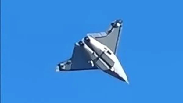 Seen here from the rear aspect, there is no sign of the ‘pop-out’ maneuvering tail surfaces that some had suggested might be present and which had also appeared in ‘fan art’ of the same aircraft. The suggestion was that such surfaces might sit flush with the inner wing area, before being activated for low-speed flight, increasing control authority and maneuverability. As we explained in our analysis feature, this didn’t seem to be the case and this photo helps disprove this claim further — especially since the aircraft is seen in a low-speed phase of flight when such control surfaces would be deployed.