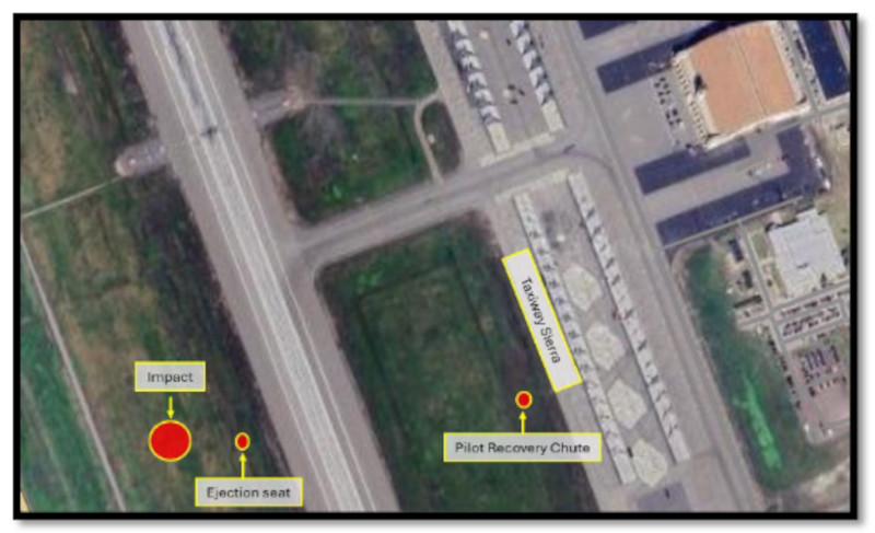 “The MP accomplished two touch-and-go landings attempting to recenter the NLG wheel. While both attempts failed to center the NLG wheel, the right main landing gear (MLG) strut and then left MLG strut did not fully extend after takeoff due to ice forming inside the strut,” it continues. “After the second touch-and-go, all valid Weight on Wheels (WoW) sensors indicated the MA was on the ground, and the MA transitioned to the ‘on ground’ flight control law (i.e., automated ground-operation mode causing the MA to operate as though it was on the ground when flying). However, because it was actually airborne, the MA was uncontrollable. The pilot successfully ejected and emergency responders were at the scene within a minute.”