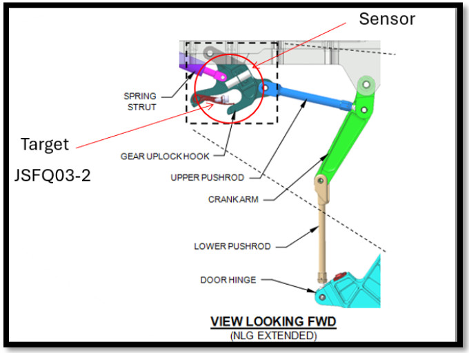 In terms of what specifically happened to the aircraft’s landing gear, “the NLG Uplock Hook is used to ensure the NLG assembly is up and locked appropriately. The uplock is mechanically ‘slaved’ to the NLG door,” the report explains. “The NLG is in the uplock so NLG door actuator will start to close the door, raising the uplock hook into the ‘LOCKED’ position. When the uplock hook is in ‘LOCKED’ position, the doors are closed and aircraft is ready for full flight envelope.”