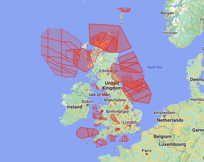Civilian drone operations are prohibited over wide swaths of British airspace, largely over military installations, which you can see in the following map compiled by the UK AIS Internet Briefing System. The map is interactive to allow drone operators to know the local restrictions.