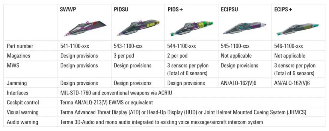 As already mentioned, at least some of Ukraine’s initial tranche of F-16s have been spotted with pylons from defense contractor Terma in Denmark that have built-in approach warning sensors and that can be fitted with electronic warfare jammers, as well as dispensers for decoy flares and chaff. The pylons are tied to the jet’s internal self-protection suite to provide synergistic effects. It is worth noting that the Air Force has acquired similar pylon-based systems for its F-16s in the past, but without any express mention of integrated jammers.