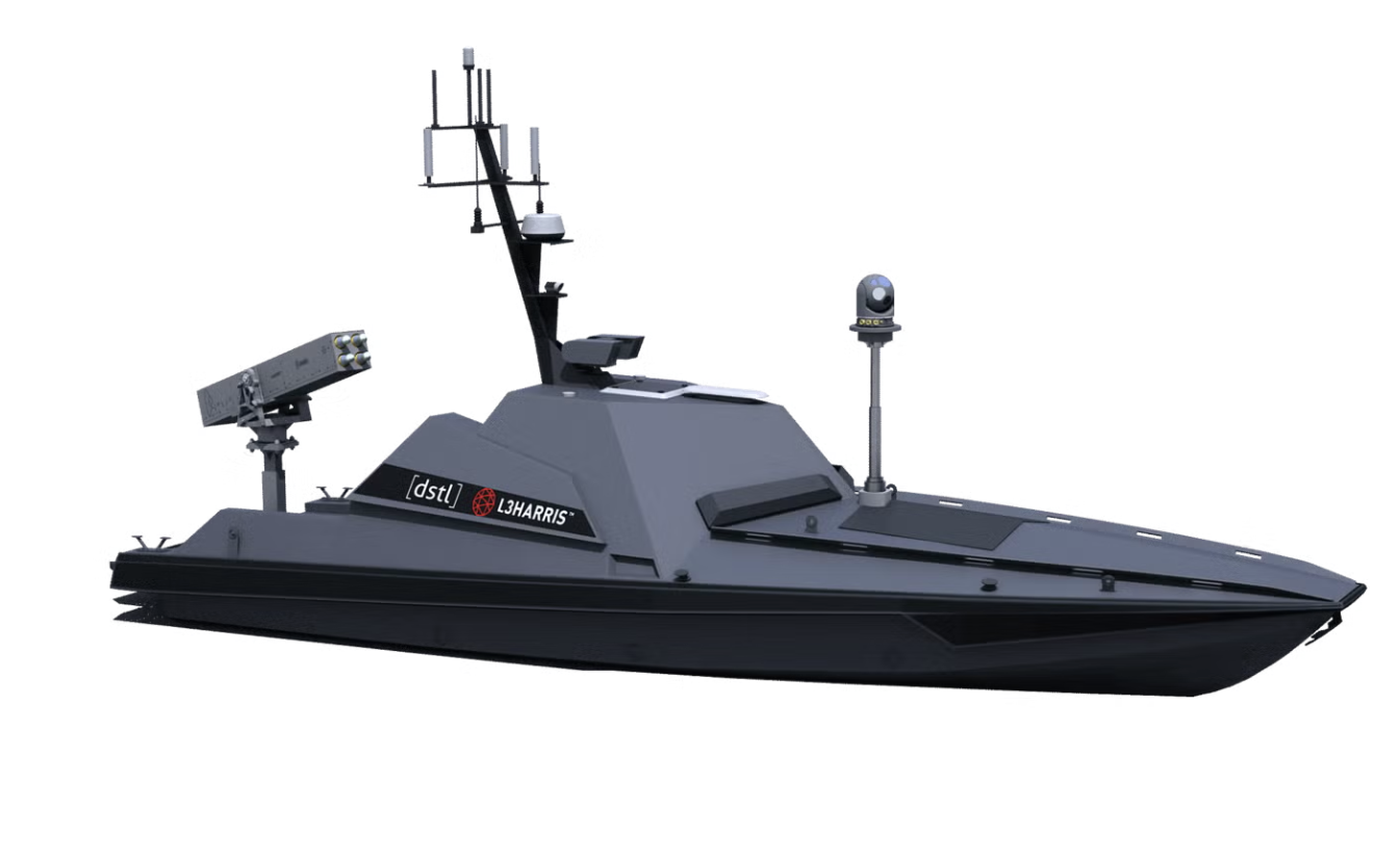 Finally, as Black Wake, the system is mounted aboard an uncrewed surface vessel (USV, or ‘drone boat’). The drone boat in question is the Maritime Autonomy Surface Testbed (MAST) 13, a 41-foot high-speed vessel that uses L3Harris’ ASView proprietary autonomous control system. In this instance, the rocket launcher is mounted at the rear, with the telescopic mast for the sensor turret at the front, in a concept that is loosely reminiscent of rocket-armed USVs developed by Ukraine.