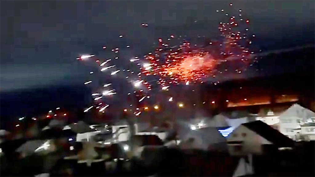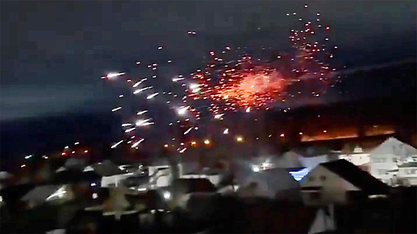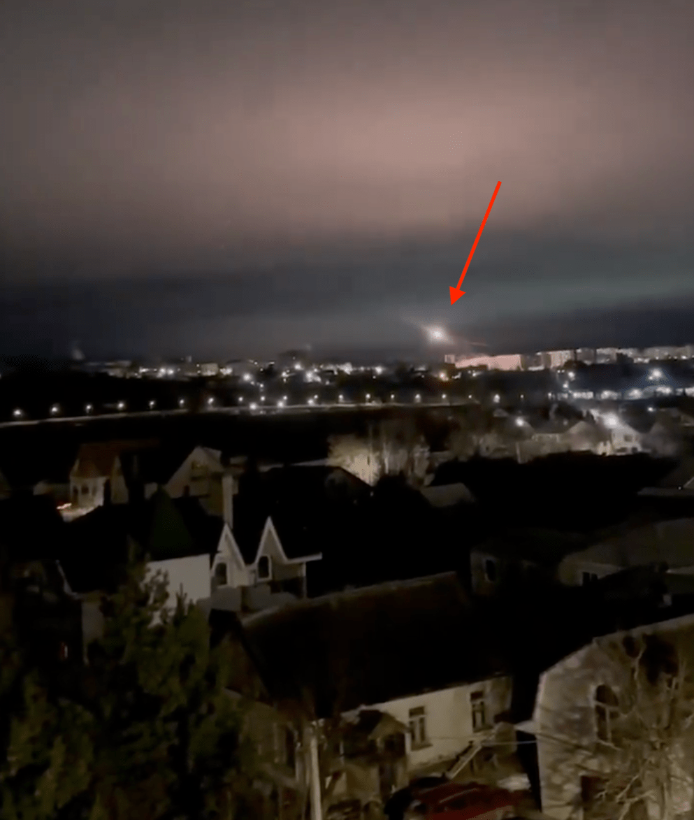 The video in question, which began to appear on social media earlier today, was taken by a bystander who witnessed the drone strike, reportedly over the Smolensk region in western Russia. In the video, taken overnight, we can clearly hear the buzzing engine of a Ukrainian drone, as flashes from nearby explosions illuminate the clouds. We then see the rocket engine of a Russian surface-to-air missile moving from right to left and at a very low level. So low, in fact, is the missile, that the glare from its motor can be seen to illuminate nearby houses as it passes them. It then impacts its target in a shower of sparks and burning debris.