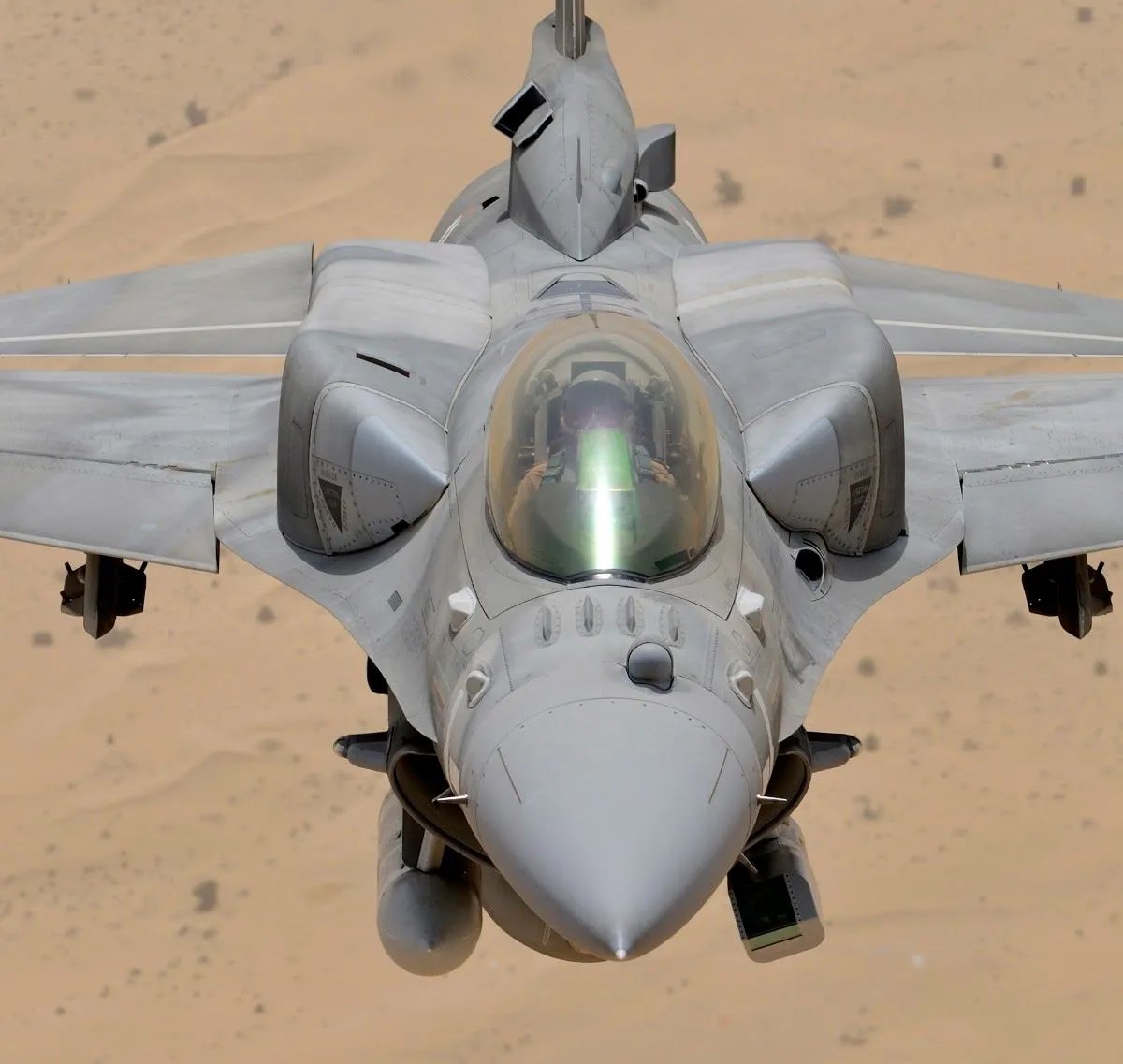 However, the most notable visible feature of the aircraft is the small fairing ahead of the windshield, which is almost certainly an IRST sensor.