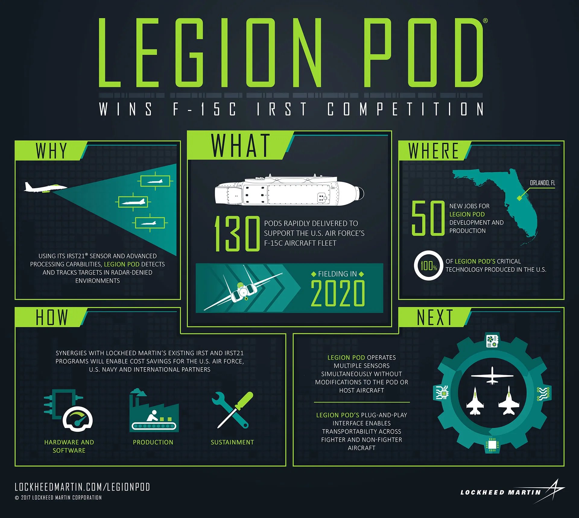 As for the Legion Pod, this is used on U.S. Air Force F-15C ‘legacy’ Eagles and is also part of the sensor suite on the newer F-15EX Eagle II. The pod is carried on the centerline station below the fuselage.