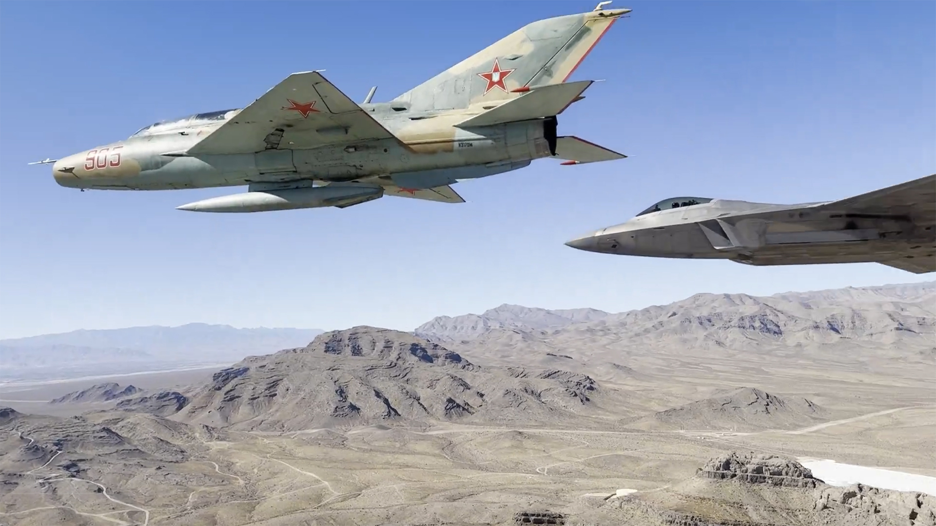 Newly-released footage records the unique formation flight over Nevada’s Nellis Air Force Base last November, which brought together U.S. Air Force F-22 Raptor stealth fighters and Soviet-era MiG-21 and MiG-29 jets. The four-ship took to the skies to mark the passing of Col. Gail Peck (ret.), former commander of the legendary 4477th Test and Evaluation Squadron “Red Eagles” that conducted highly-classified missions using Soviet combat jets in the late 1970s and 1980s.