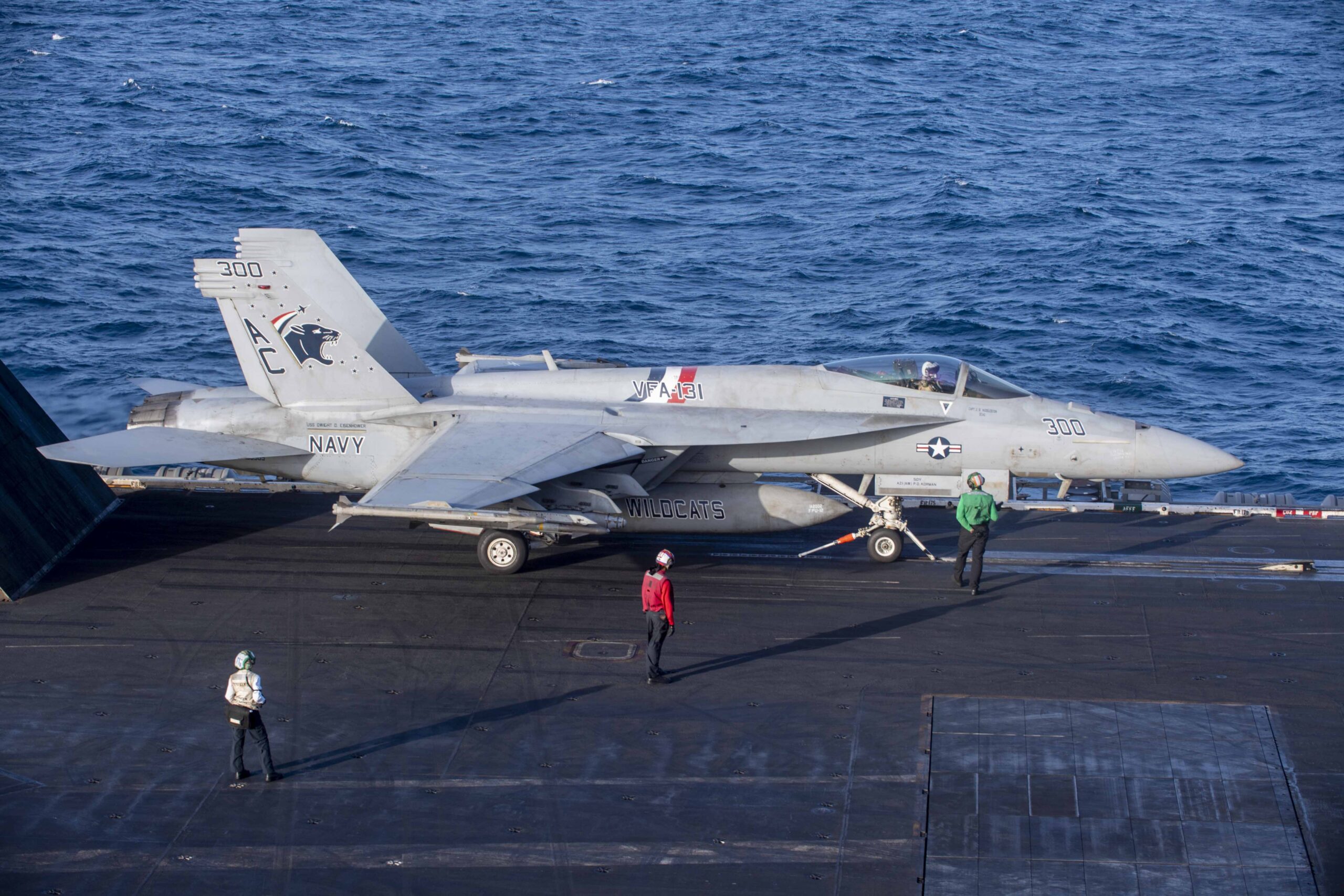 The pictures released today, which were taken back on March 9 from the deck of America’s second oldest supercarrier, show the new armament configuration operationalized on an F/A-18E Super Hornet from Strike Fighter Squadron (VFA-131), the “Wildcats.”