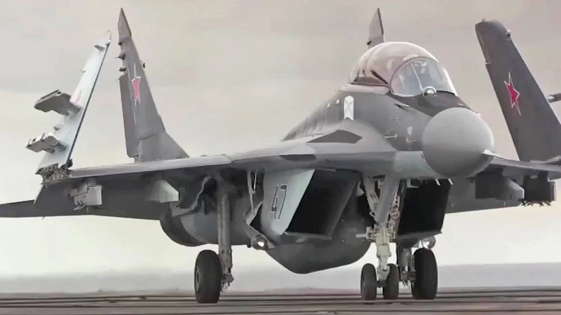 The Fulcrum in question appears to be a Russian Navy MiG-29KR or MiG-29KUBR. Since both these jets, which are single-seaters and two-seaters, respectively, have the same cockpit canopy, it is very hard to distinguish between them in the available imagery. The single-seater has an additional fuel tank in place of the back-seater’s cockpit.