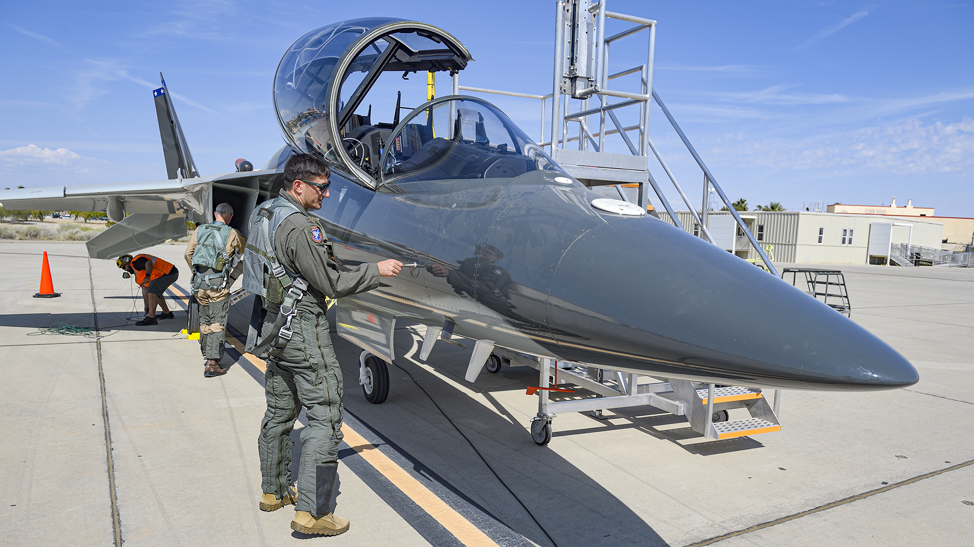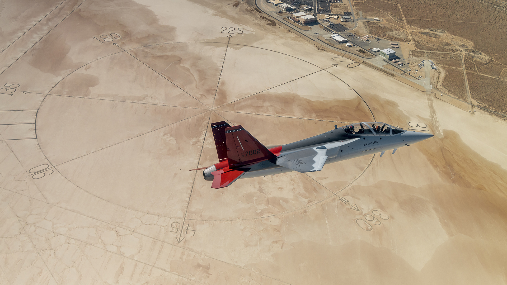 The flying at Edwards typically sees T-7As being crewed with one Boeing and one Air Force pilot, with all maintenance being conducted under contract by the manufacturer. “We’re very much hand-in-hand and integrated together,” explains Aronoff. “We are the lead developmental test organization [LDTO] and Boeing is our partner, and we stay in lockstep with them. We make sure that when we’re going to test something that they agree it’s something we should be testing, that the conditions are appropriate and that we’re testing it in the correct way. It’s about making sure we are going after the right data in the right way to satisfy the contractual obligations to develop the airplane.”
