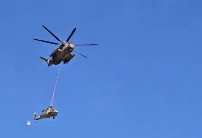 According to the Israel Defense Forces (IDF), the sling-load operation was originally launched to recover an IAF Yanshuf medium-lift helicopter — the local name for the S-70/UH-60 Black Hawk. The Yanshuf had made an emergency landing earlier this week when it encountered bad weather in the Gush Etzion area, directly south of Jerusalem, in the West Bank.