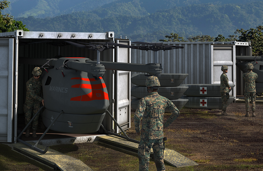 The program aims to field a medium-weight autonomous logistics platform that can deliver critical supplies to Marines, in particular when conventional ground or crewed aviation assets may not be able to support them. As well as the threat from hostile forces, these other kinds of assets may also be unavailable due to the nature of the terrain, weather, or the fact that they are needed for other missions.