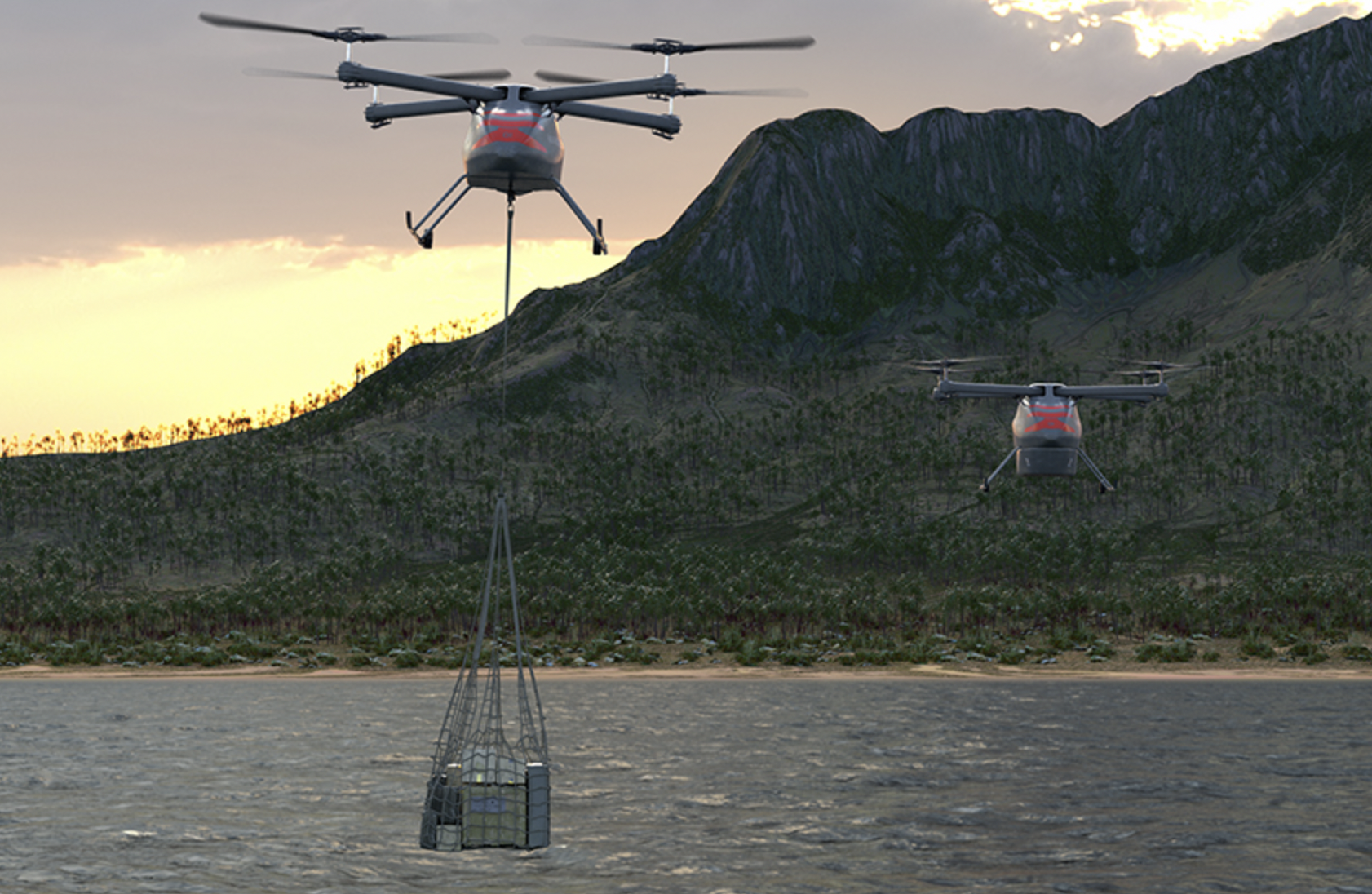 As well as the ability to carry a payload of up to 800 pounds, some other of the Kargo UAV’s specifications have been published, including a gross weight of around 1,500 pounds, and a footprint on the ground of approximately 24 square feet from the rotor tips. For stowage, the drone can be folded up to fit inside a 20-foot container, together with ancillary equipment.