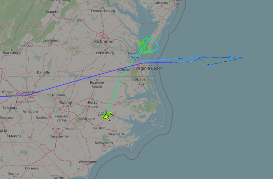 At the time of writing, FELL 81 remains airborne in a holding pattern just to the south of Greenville, North Carolina, according to flight tracking data from ADS-B Exchange. The track shows the tanker initially circled over the southern end of the Chesapeake Bay, where the crew may have dumped fuel and otherwise made initial assessments about the damage, before heading south.