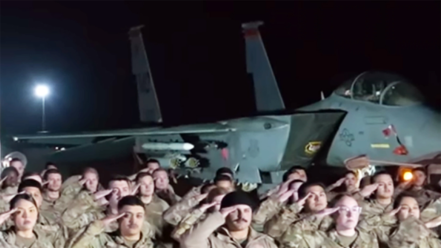 While the video did not specify where in the Middle East, the jets belong to the 332 Air Expeditionary Wing, which has been stationed at Muwaffaq Salti Air Base in Jordan. The installation has long been a known hub for U.S. F-15E operations in the region and is the site of an ongoing buildup of U.S. forces as the U.S. postures for potential strikes against Iran.