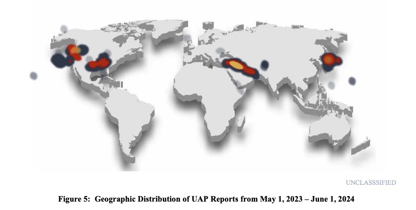 One of AARO’s first missions for GREMLIN is to help establish a baseline for what would be considered normal activity, especially because so many UAPs have been reported either through sensors near military installations or by pilots. According to today’s report, nearly half of the 485 UAP sightings reported from May 1, 2023 to June 1, 2024 came from locations near U.S. military assets and sensors at home and abroad. This could be due to the objects being tasked to surveil those locations or due to sensor bias, as these areas are more heavily monitored than others, or more likely a mix of both.