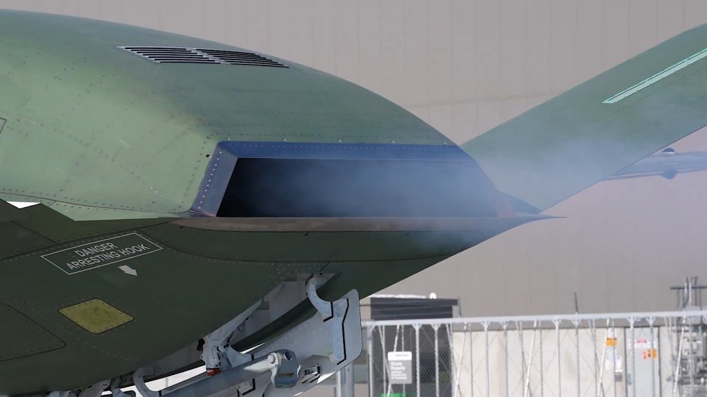 The footage released today provides new views of the drone’s exotic top-mounted ‘flush’ air inlet and its engine exhaust inset inside the fuselage, as seen at the top of this story and below. TWZ has drawn particular attention to the inlet in the past, which speaks to the design’s other low observable (stealthy) features, as well as its overall design, despite this not being an explicit focus of the MQ-25 program.