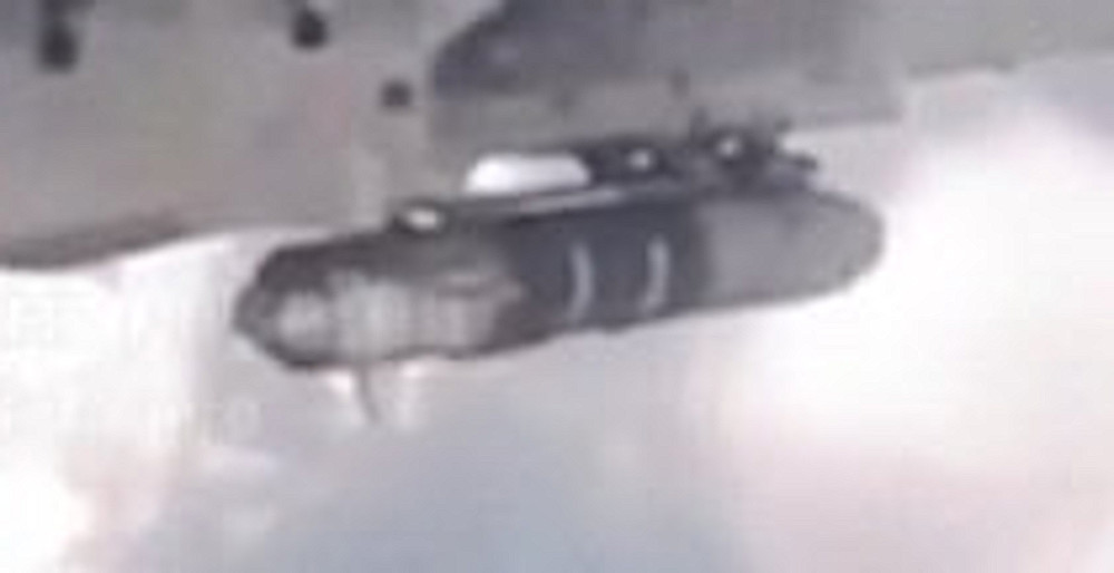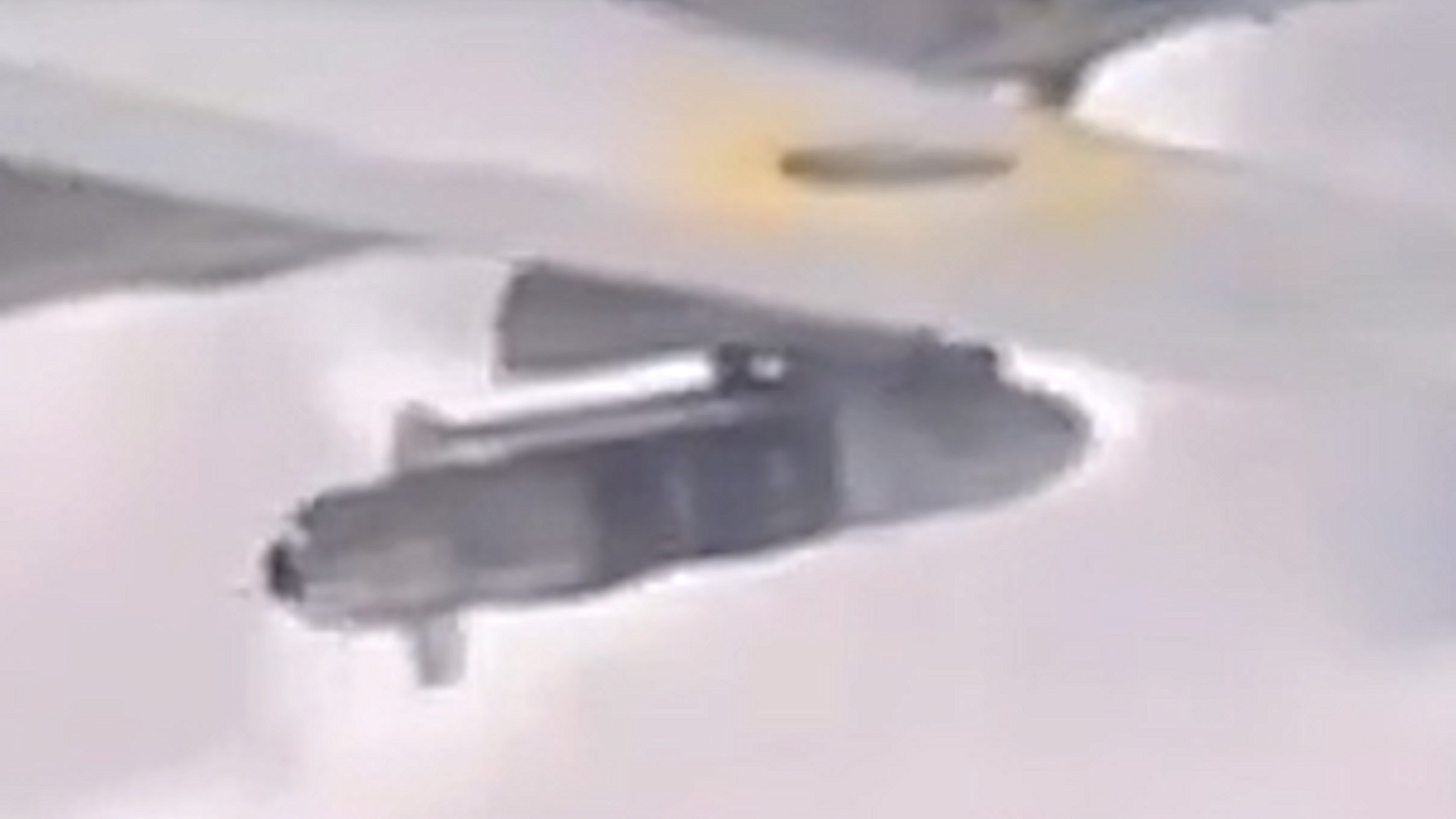 A ‘rib’ is also present along the top of the munition along with metal bands around the center of the body, which all points to the munition having a pair of pop-out wings. There is also a possibility that could be part of the assembly required to attach it to the Su-24’s underwing pylon. The JDAM-ERs, as well as Small Diameter Bombs (SDB), that Ukraine has received from the United States feature pop-out wings, as do Russia’s bombs fitted with that country’s add-on precision-guided munition kits.