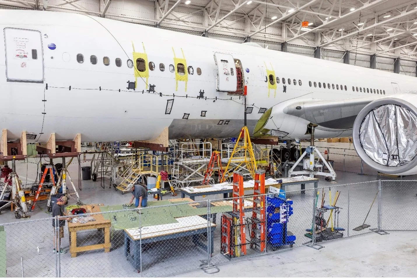 While in Waco, the 777 underwent modifications, including the installation of dedicated research stations and extensive wiring. Wiring harnesses running through the fuselage are needed to allow the operators’ workstations to communicate with sensors such as LIDAR and infrared imaging spectrometers during flights.