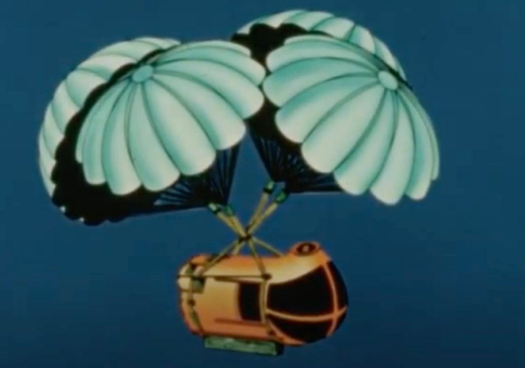 As the video above highlights, the Naval Weapons Laboratory in Dahlgren, Virginia, designed and developed a “ballistic system” for the separation and recovery of a helicopter escape capsule.