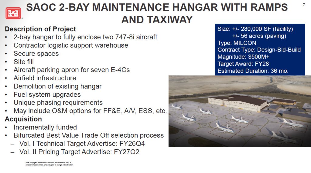 All that being said, the SAOC fleet is set to be larger than the NAOC fleet. AFGSC’s Gen. Davis confirmed in the interview that the Air Force is looking to acquire six E-4Cs, at a minimum, and potentially up to eight of the jets. Previously released U.S. Army Corps of Engineers contracting documents had already discussed plans for improvements at Offutt Air Force Base in Nebraska to accommodate as many as eight SAOC jets. Offutt is currently home to the E-4B and E-6B fleets.