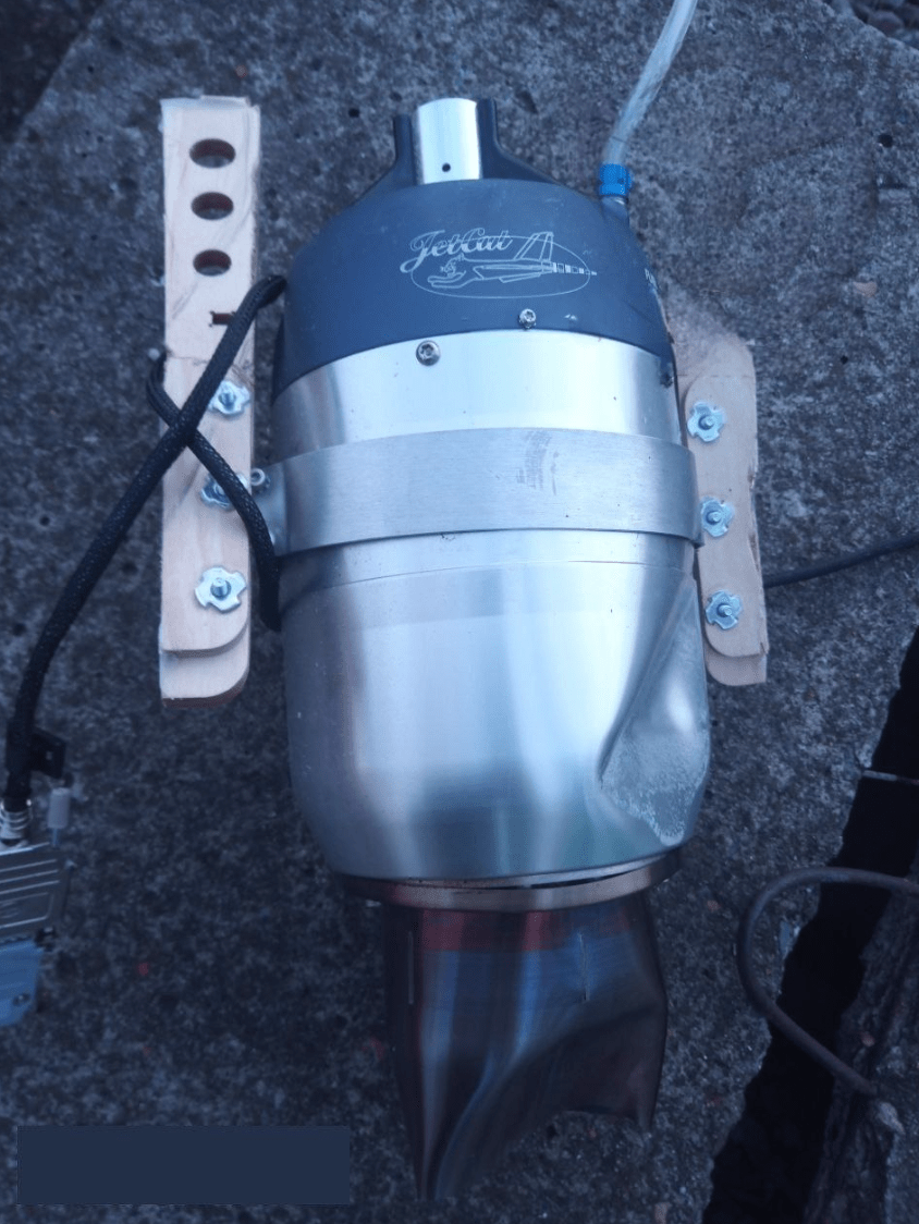 Inspection of the wreckage indicates that the drone is powered by a commercially available micro turbojet, installed in the tail section, and fed by a conformal intake below the fuselage. Specifically, the engine is a P400-PRO from the German JetCat company. This turbojet weighs only around eight pounds, has a diameter of a little under six inches, and has a thrust output of 95 pounds. This engine is often used by hobbyists in high-end remote control aircraft and is ready available for purchase online, with prices generally around $10,000 to $12,000.