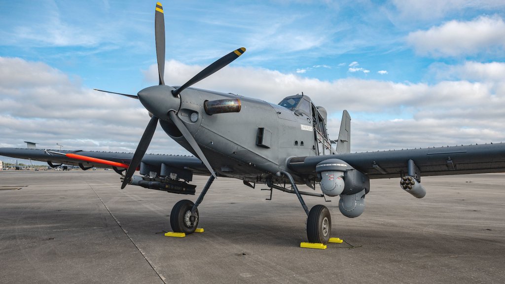 The two-seat OA-1K can carry up to 6,000 pounds of munitions and other stores, including precision-guided missiles and bombs and podded sensor systems, on up to eight underwing pylons. L3Harris has previously said the aircraft can fly out to an area up to 200 miles away and loiter there for up to six hours with a typical combat load. They also have a “robust suite of radios and datalinks providing multiple means for line-of-sight (LOS) and beyond line-of-sight (BLOS) communications,” according to the company.