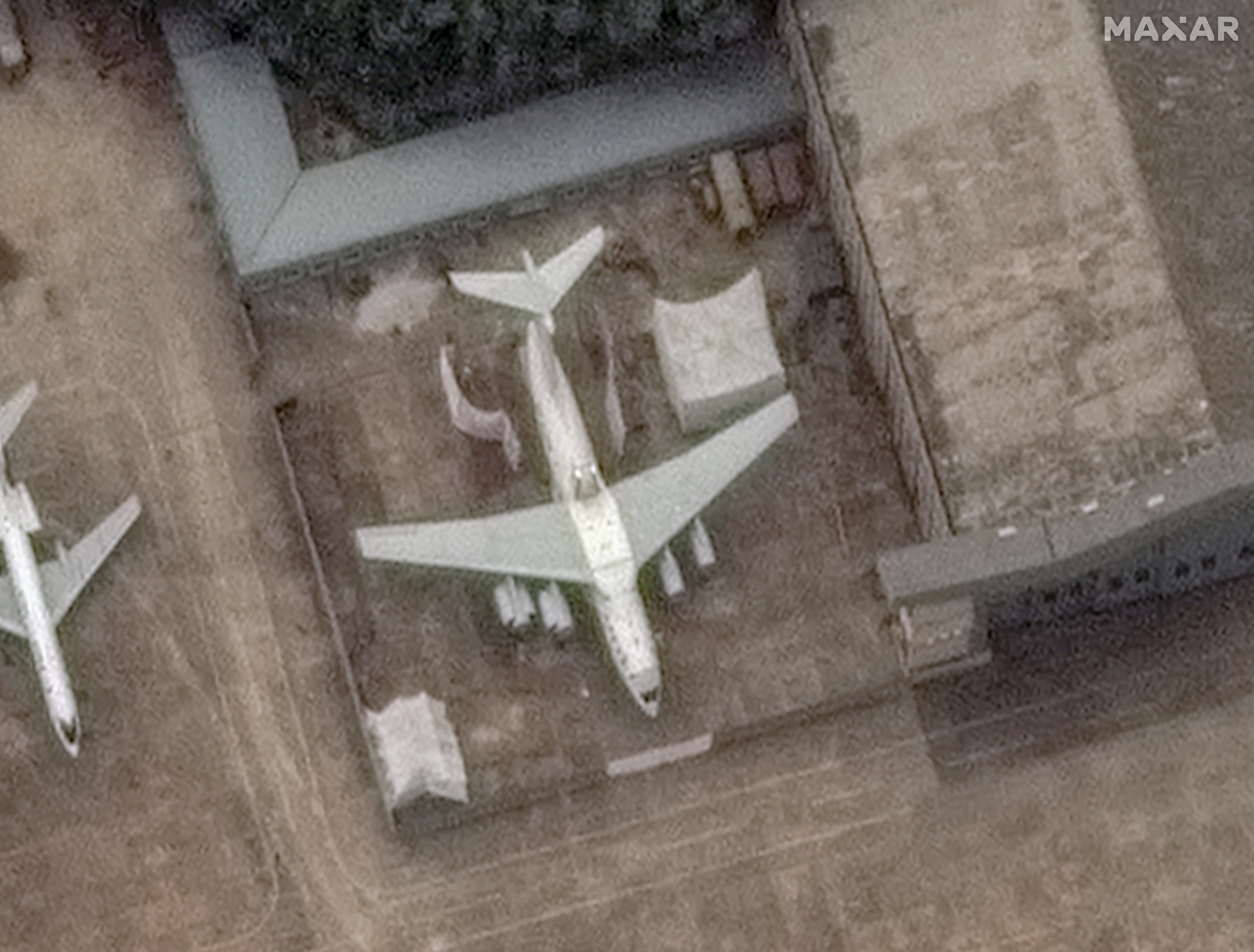 Reportedly, as of November 2024, the aircraft had been moved into a hangar adjacent to the compound and remained there until late February 2025, when it appeared outside the hangar with the radome mounted.