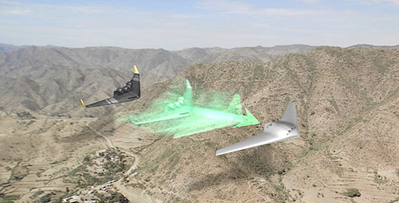 Another interesting feature of the XRQ-73 that was not visible in the previous rendering is a large, faceted fairing below the central section of the fuselage. This is very likely a sensor enclosure that can handle different kinds of electro-optical, radar, and passive radio-frequency payloads. This general arrangement also exists on the similarly-shaped RQ-170 Sentinel.