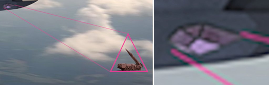 In terms of sensors, a faceted enclosure is seen underneath the drone’s left front ‘horn’ in the rendering, and is depicted ‘scanning’ a Scud-type ballistic missile transporter-erector-launcher. This would point to a multi-purpose electro-optical targeting system of some kind. A Chinese J-20 stealth fighter is shown as a notional aerial threat. Clone Ranger could conceivably be fitted with a small radar and/or a dedicated infrared search and track system (IRST) for use in air-to-air engagements.