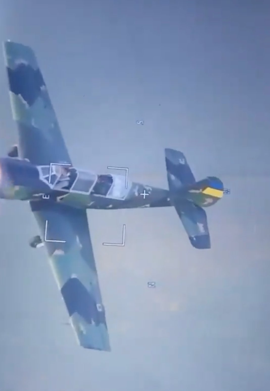 Videos show a Ukrainian Yak-52 attacking a Russian Orlan-10 drone, reportedly in the Odesa region of southwest Ukraine, in April 2024: