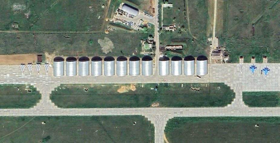 As we noted in a story in June about the need for protective shelters for aircraft in the age of drones, Google Earth highlighted 12 aircraft shelters on the Marinovka flight line. Construction began in November of last year. This is a relatively rare feature for Russian airbases. You can see those shelters in the image below.