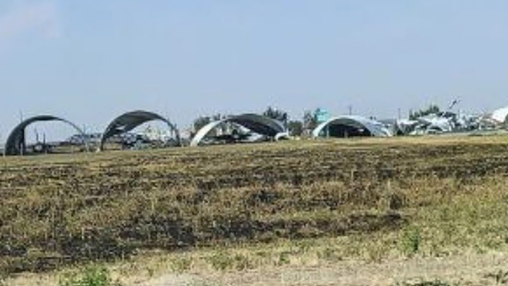 One image posted on Telegram and enlarged by Radio Free Europe/Radio Liberty journalist Mark Krutov offered a better view of the aircraft caught in the hangars.