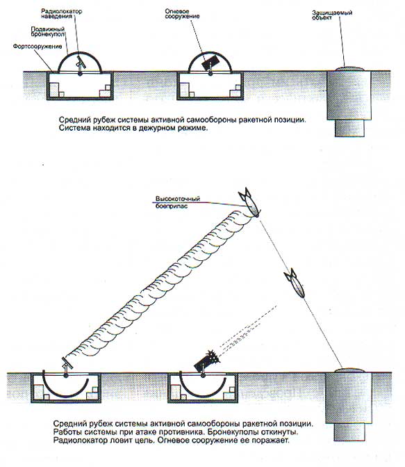 It should be noted that the United States also looked at a very similar kind of APS as a means of protecting its planned MX (later LGM-118 Peacekeeper) ICBM sites. This was known as Swarmjet and would have comprised launchers containing thousands of spin-stabilized unguided rockets. Unlike its Soviet equivalent, it never reached the hardware stage.