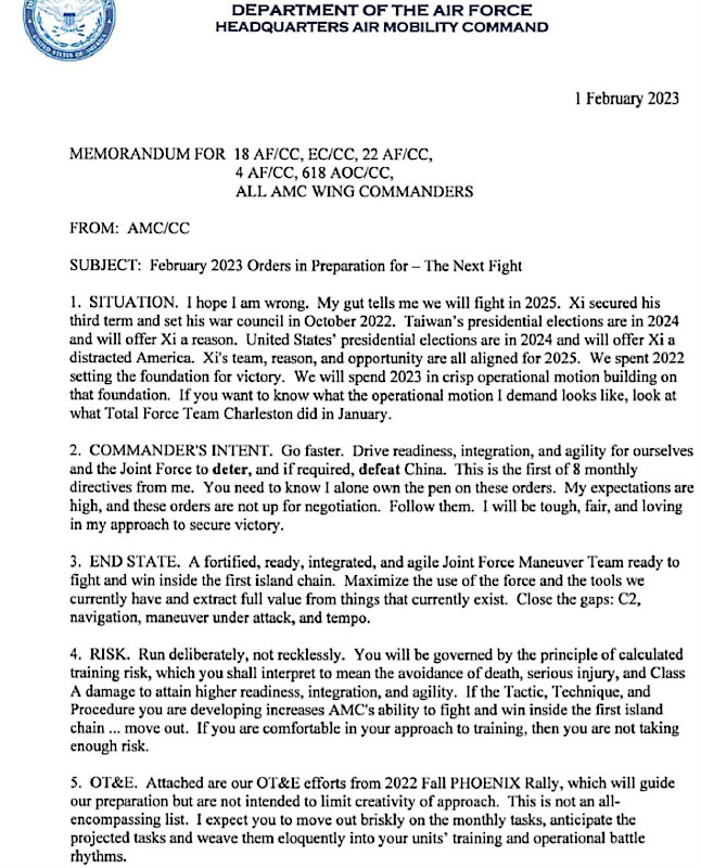 Q: Right now, a massive buildup is underway in the Middle East. AMC is doing the heavy lifting there as always. But in a crisis in the Pacific, would we have enough airlift aircraft to support moving quick enough across that vast theater, especially to respond to an invasion of Taiwan?
