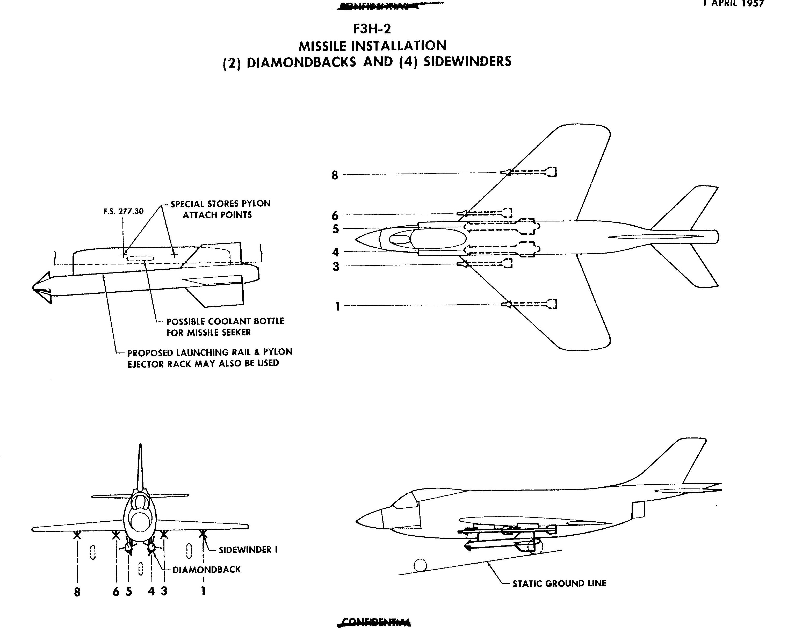 It’s unclear whether the Skyray was a candidate to carry the Diamondback, but it was envisaged for the F3H Demon and the F4H Phantom, two other carrier-based all-weather fighters.