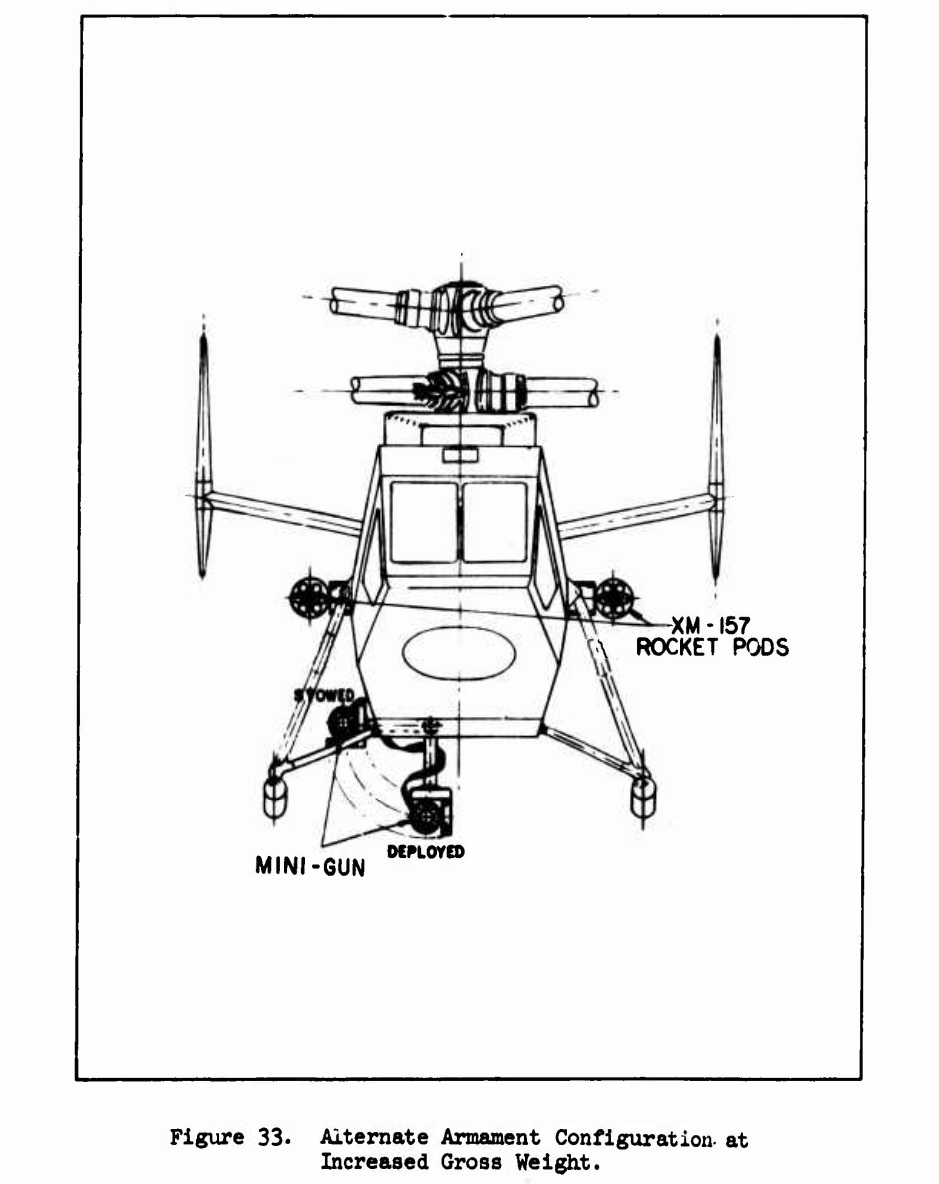 The AARV would also have had provision for its own weapons, with options to install a 7.62mm Minigun on a telescopic mounting below the fuselage, while pods of unguided rockets could be pylon-mounted on the side of the fuselage.