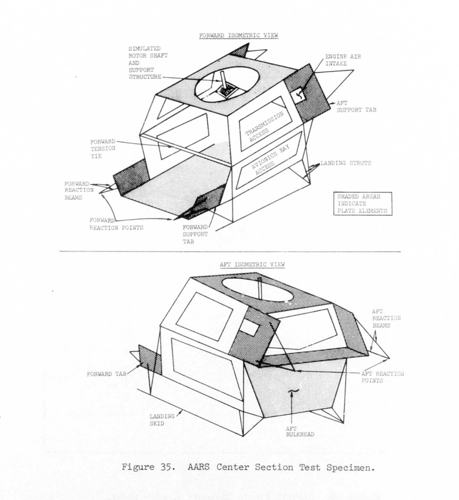 In overall configuration, and apart from its ABC rotor arrangement, the AARV was fairly conventional and simple. The fuselage was notably angular, with a prominent chine line and a faceted appearance. While this kind of design would reappear on stealthy helicopter concepts, here it was utilized for better protection against ballistic fire.