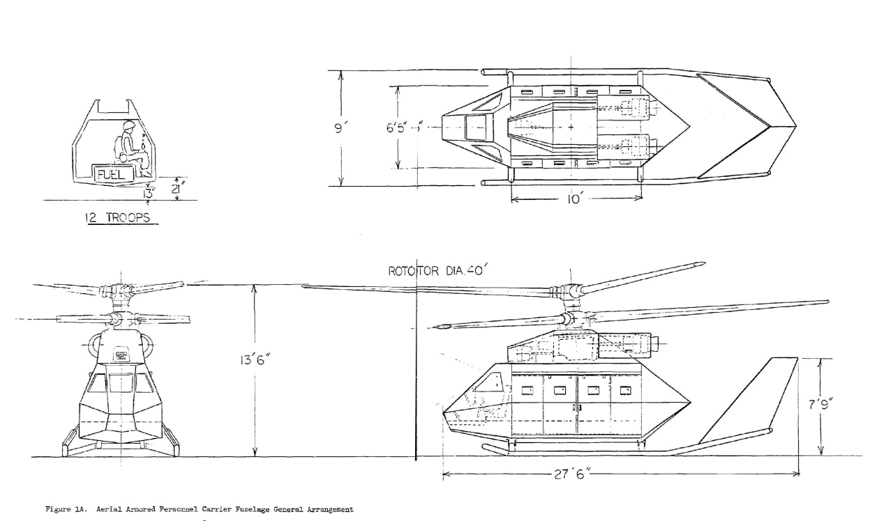 In the meantime, the same ‘armored helicopter’ thinking that led to the AARV was also used as the basis for another Sikorsky project, the Aerial Armored Personnel Carrier (AAPC).