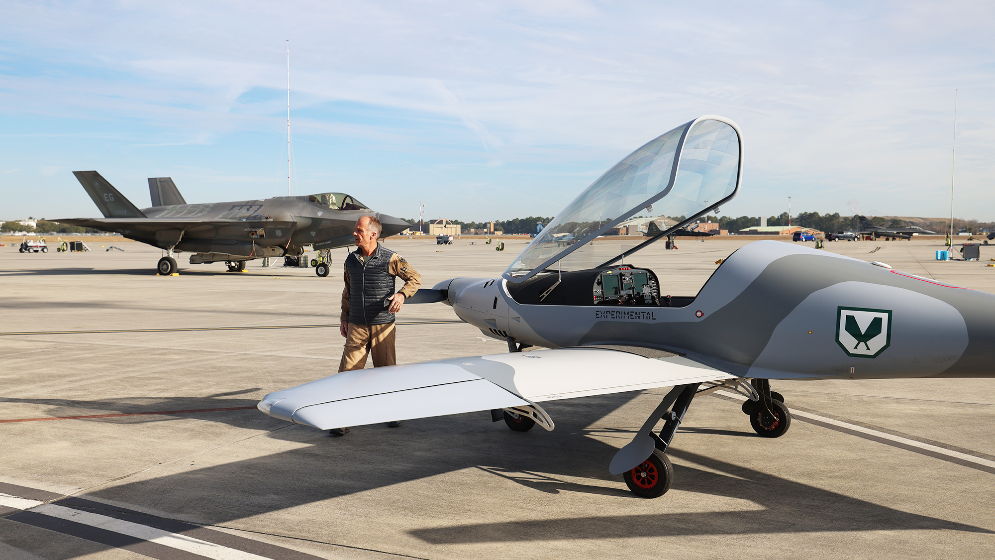 “I can’t speak highly enough about AFWERX. We were selected in 2021 for a direct-to-phase-two prototype contract to build a low-observable manned aircraft that could simulate a weaponized UAV. We had a one-year period of performance, and it was a flurry of activity. We had to deal with some airworthiness issues, but got that worked out. We worked with the 57th OG and the 65th Aggressors. Being a manned aircraft, we were so much more flexible because we could fly any profile you want and change it very quickly, because all we had to do was comply with FAA regulations,” Moseley added.